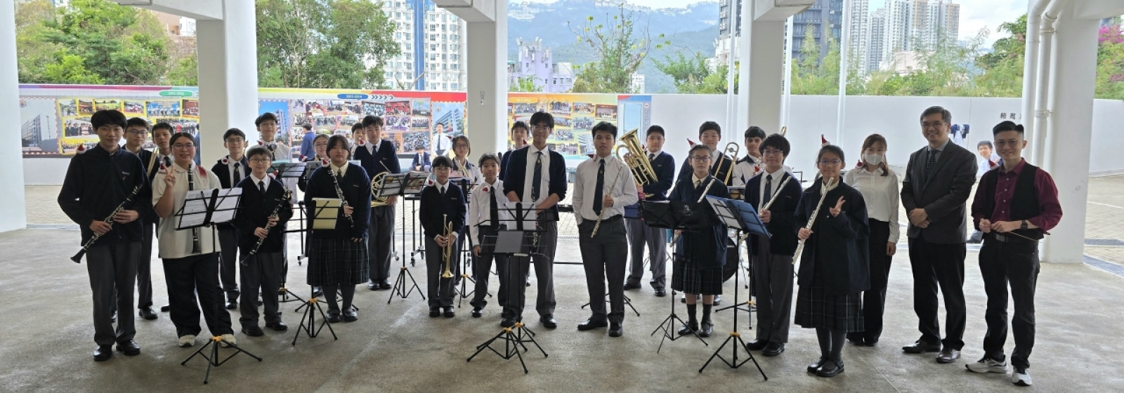 • 前港督夫人彭穎彤女士親臨作新校舍及泳池揭幕禮主禮嘉賓,會後與嘉賓合照